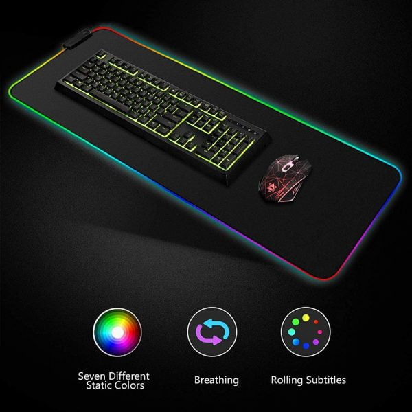این موس پد گیمینگ با داشتن سایز نسبتا بزرگ بیشتر فضای میز شما را پر می کند و با داشتن نوری پردازی زیبای RGB حال و هوای میز شما را عوض می کند و همچنین نظم خوبی به میز شما می دهد.