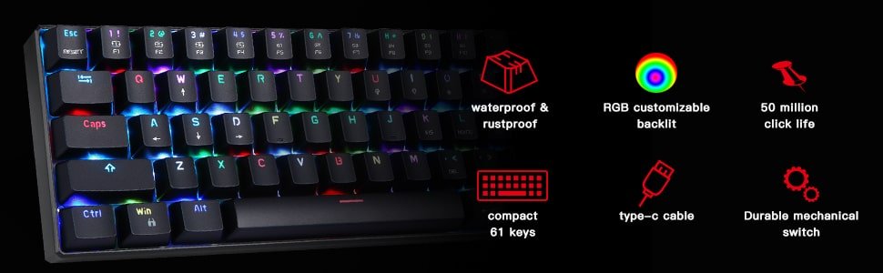طراحی جمع و جور و 61 کلیدی این کیبورد مکانیکی باعث صرفه جویی بیشتر در فضای شما می شود ، شما می توانید از این صفحه کلید مکانیکی 60 درصد در خانه ، شرکت و حتی در سفر استفاده کنید همچنین حمل و نقل این کیبورد بسیار راحت میباشد و سوئیچ ها آن از بالاترین کیفیت برخوردار هستند و طول عمر و دوام بسیار بالایی دارند.